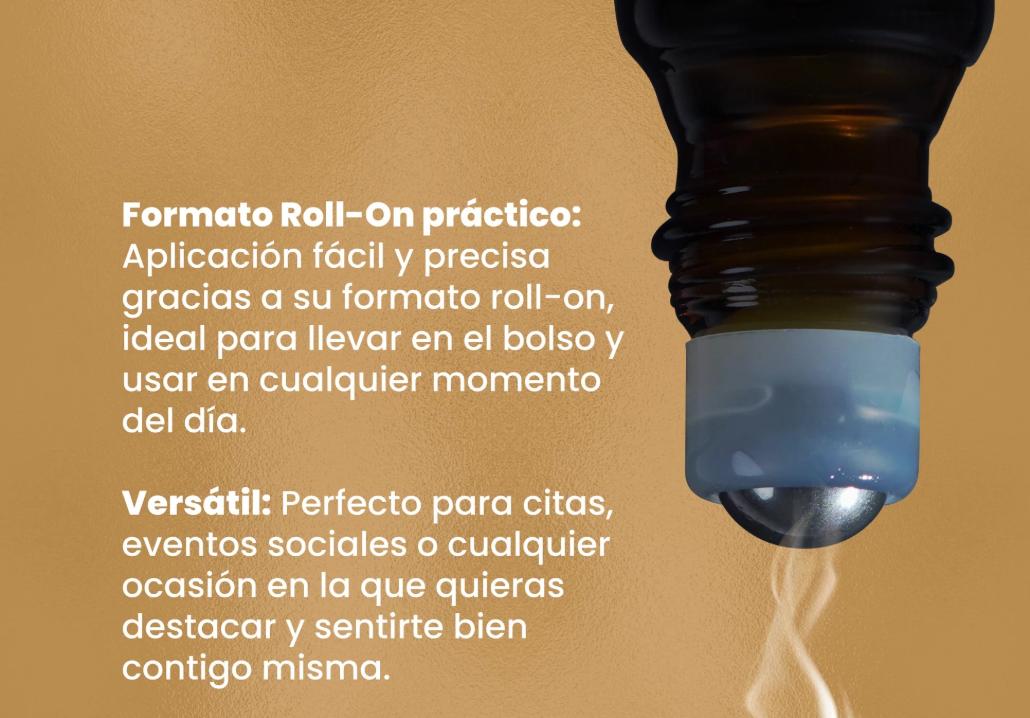 Aplica el roll-on sobre las zonas de pulso como muñecas, cuello o detrás de las orejas.