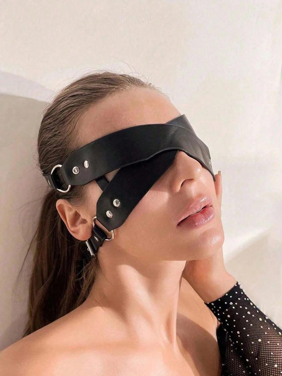 Material de Alta Calidad: Confeccionado en cuero sintético (PU) de color negro, suave al contacto con el rostro y adornado con remaches metálicos plateados que refuerzan su estilo industrial.