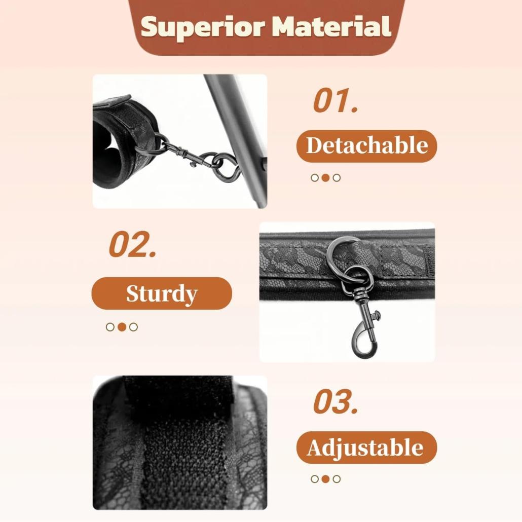 Los puños están hechos de material importado, que es suave y cómodo de llevar, lo que te ofrece una excelente experiencia de juego bondage.