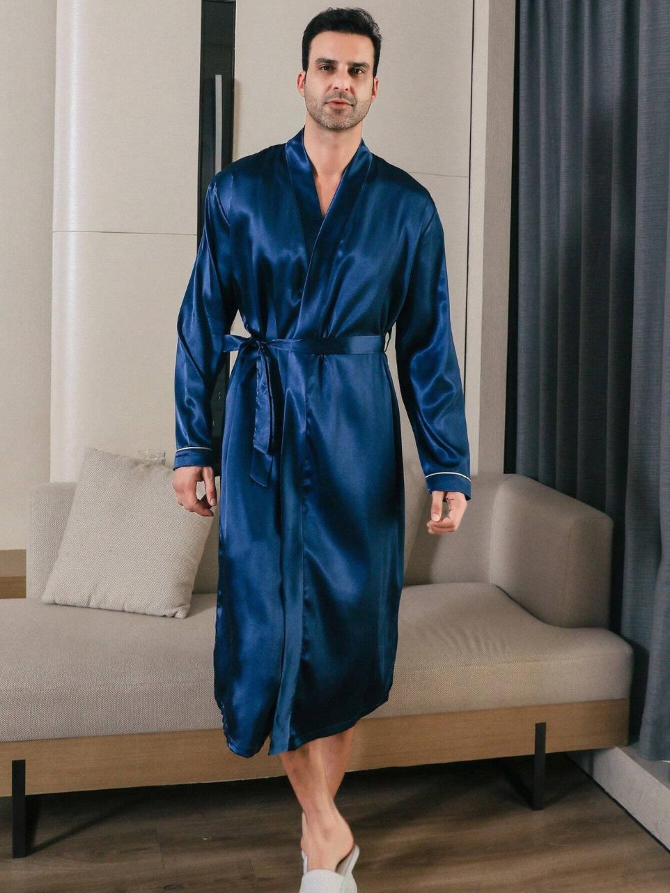 Disfruta del máximo confort con esta elegante bata en un vibrante azul rey.