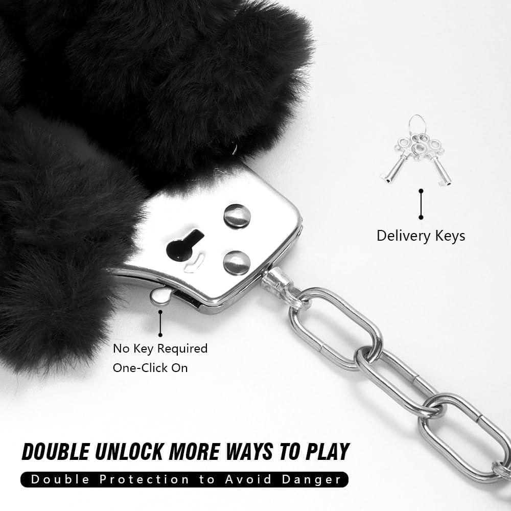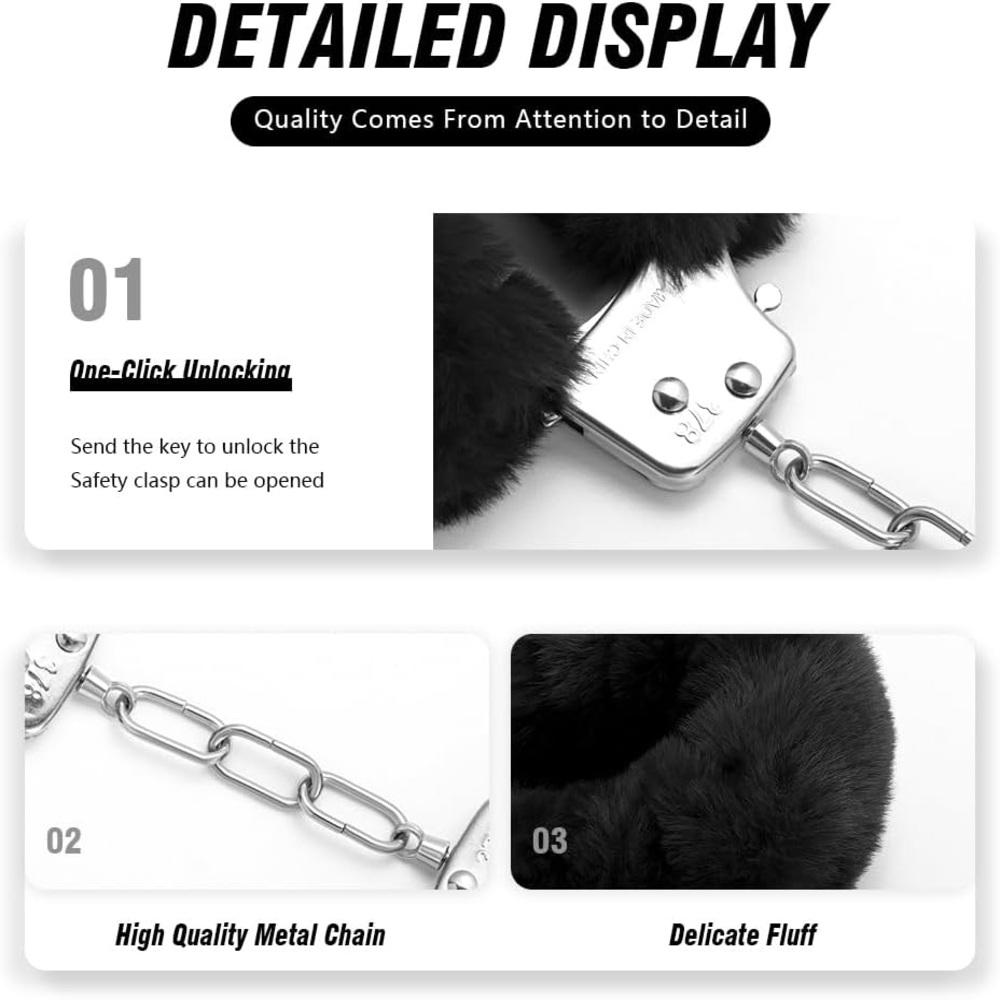 FELPA SUAVE: Forro de pelusa en esposas, el anillo interior es ajustable tanto para hombres como para mujeres, lo que te ayuda a garantizar que tu amante no se escapará y los haga restringidos y se vean sexys.