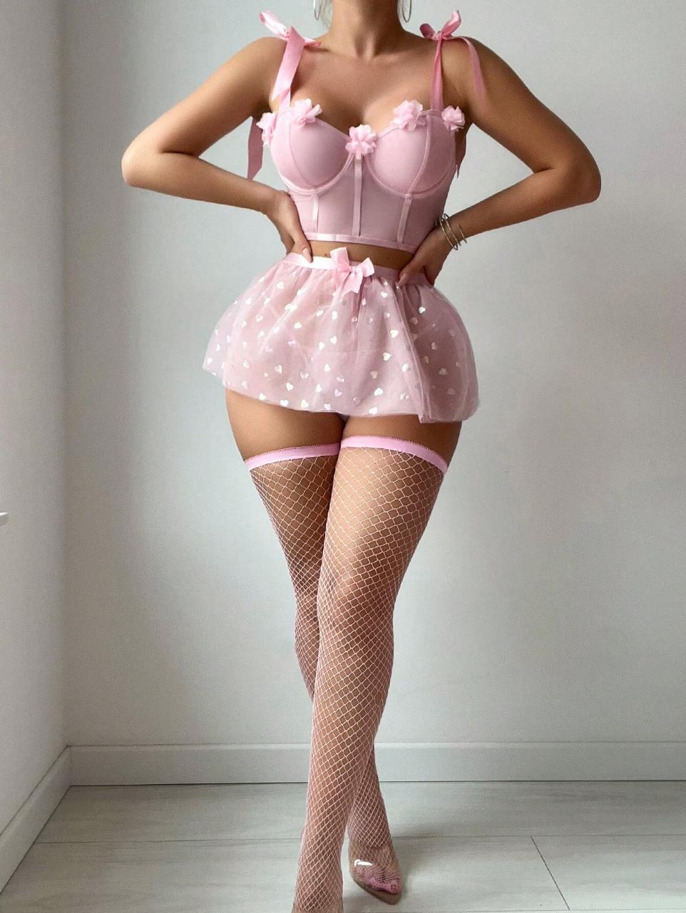 Un conjunto de en tonos suaves, con detalles en formas corazón y lindos lazos.