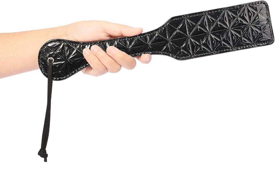 Lleva tus sesiones de BDSM al siguiente nivel con esta paleta de piel sintética negra.