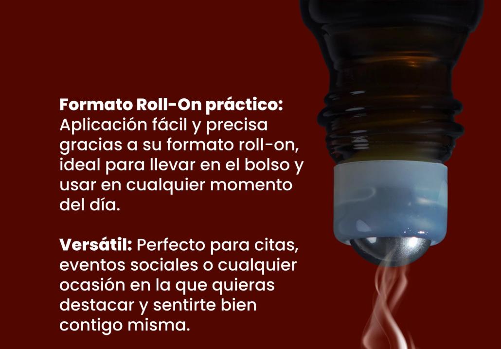 Aplica el roll-on sobre las zonas de pulso como muñecas, cuello o detrás de las orejas.