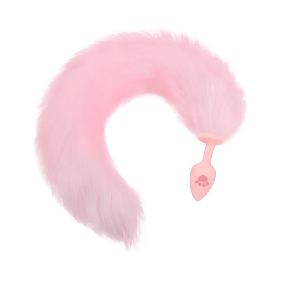 Su base presenta un adorno en forma de cola de zorro rosa, ideal para juegos de roles y momentos especiales.