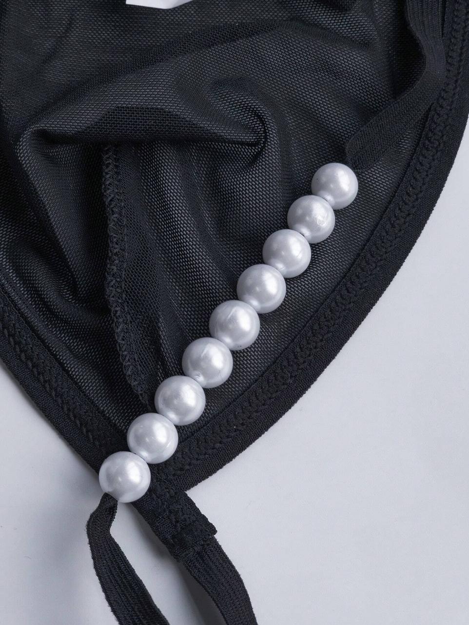 Combina la provocativa silueta de un tanga con el lujo y la textura exótica de perlas blancas.
