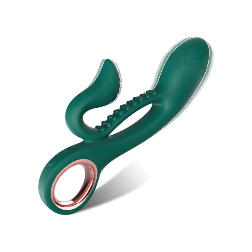 Vibrador de conejo para punto G, estimulador dual, para clítoris, anal con modos de vibración de 10 x 10, impermeable, realista y con textura de rosa